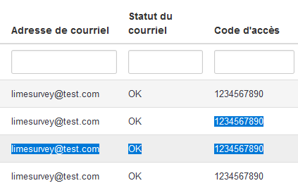 @Mazi, I confirm that I am able to create two participants with the same email with the JSON_RPC API. You suggested "In addition we could add additional parameters for enabling/disabling filters for duplicate tokens/emails/", do you mean a parameter to allow duplicate entry (email and token) like I'm able to create? If so, note that when there is a duplicate token in the participants list, it causes other bugs like the ones I mentioned. The system assumes that the participant token is unique, and if you allow having a duplicate token, I suppose you will have to change a lot of code to support this. |