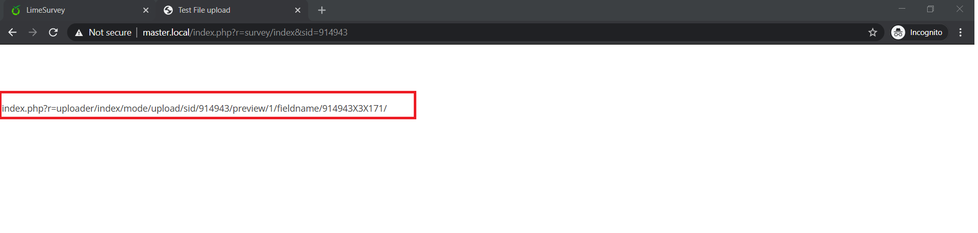 | Description | Issue: Error "/index.php?r=uploader/index/mode/upload/sid/364584/preview/0/fieldname/364584X39X1439/" message is displayed . | ||||