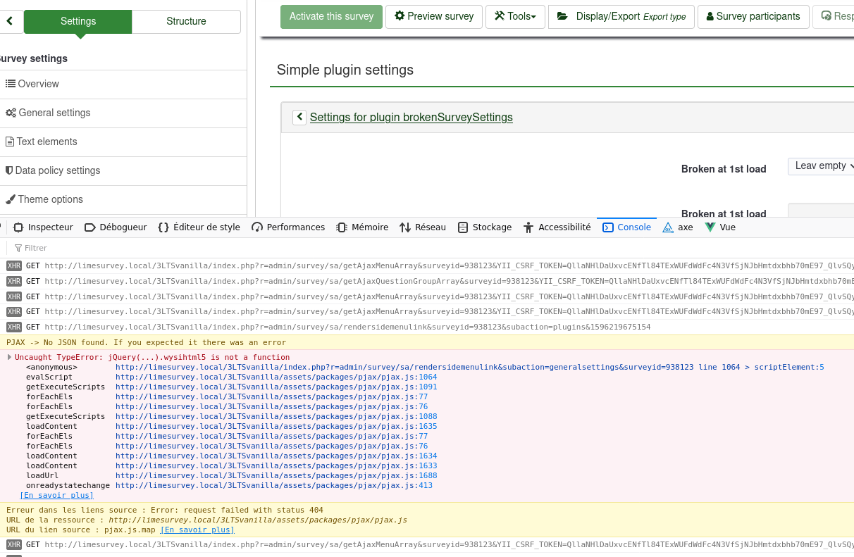 | Summary | 16558: Plugin surey settings html broken at 1st load | ||||