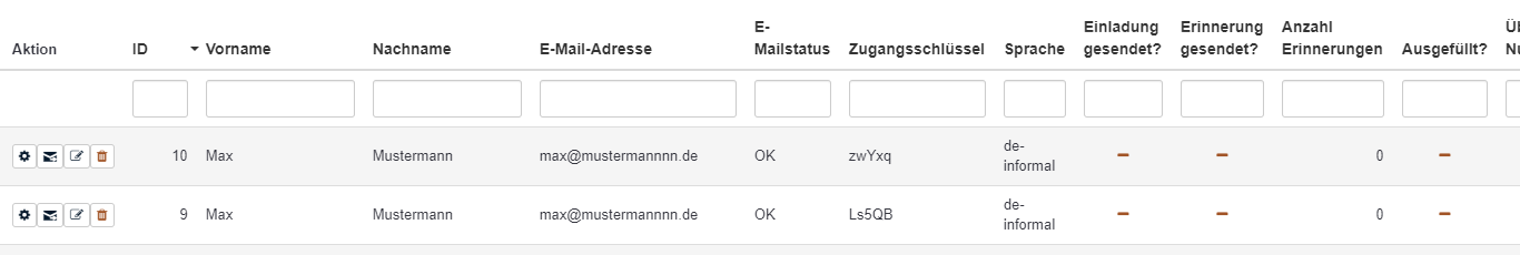 | Description | I was just about to edit a token and wondered about "completed", "invitation sent" and "reminder sent" being pre-filled with YES (ja), though I had previously re-set those fields to NO using the batch editing tool. | ||||