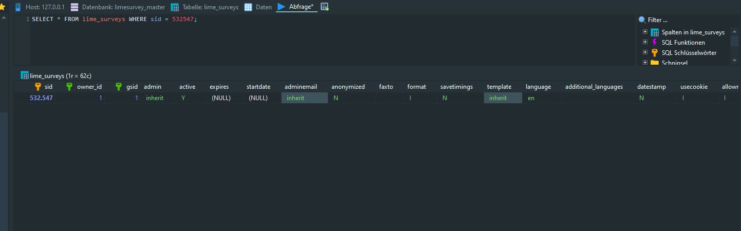 Looking this morning : Survey global settings have gsid = 0 |