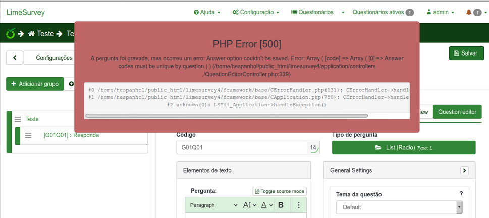 | 2020-08-25 13:53 | hespanhol | File Added: limesurvey4_error.png | |
