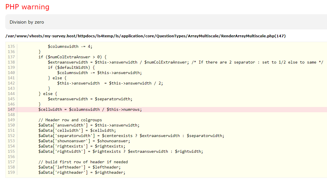 | Description | When opening a page with array questions I get a PHP warning, see screenshot. | ||||