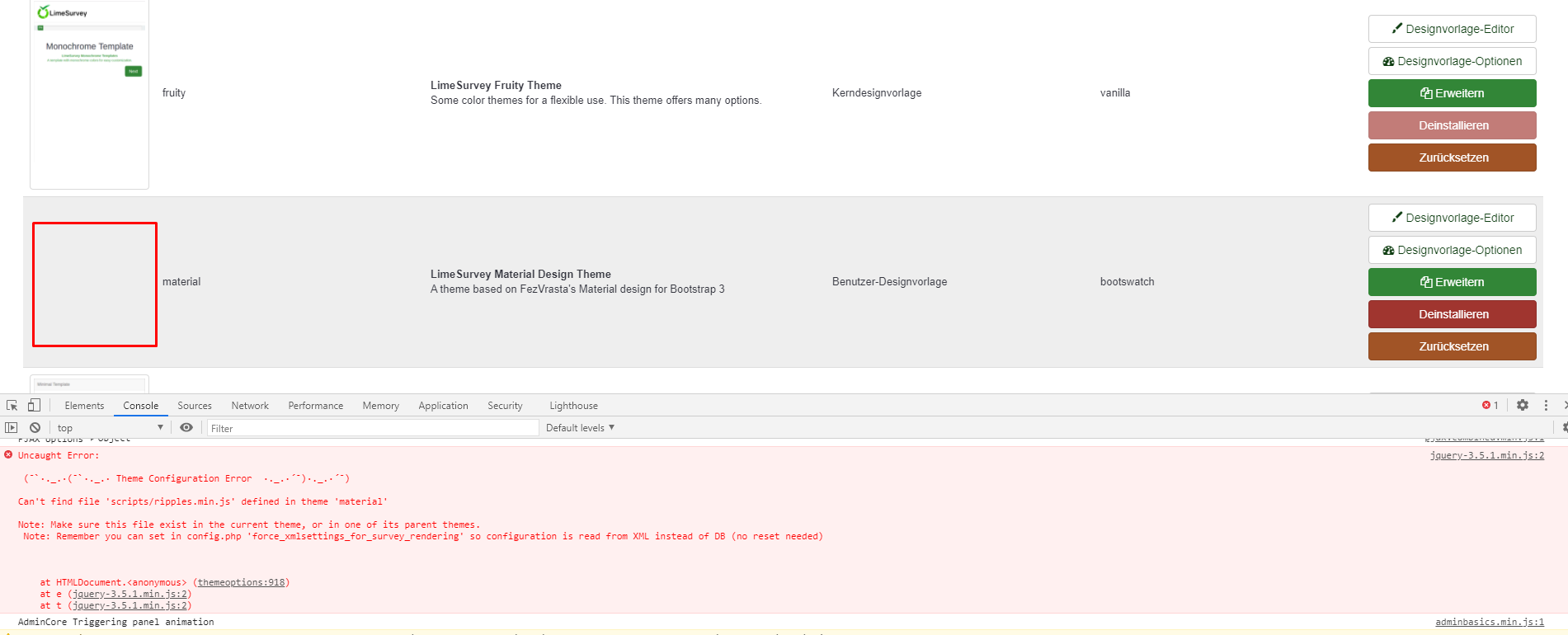 | Summary | 16655: Material theme is missing a preview image and throws JS error at theme overview | ||||