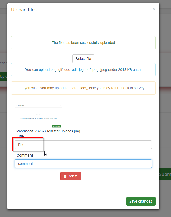Encoding the upload attributes for handling and rendering in the survey participant taking process. Still, probably, there might be a few places where adapting may be needed. |