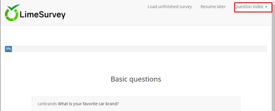 | Summary | 16665: Question index not shown if survey mode is set to "inherit" | ||||