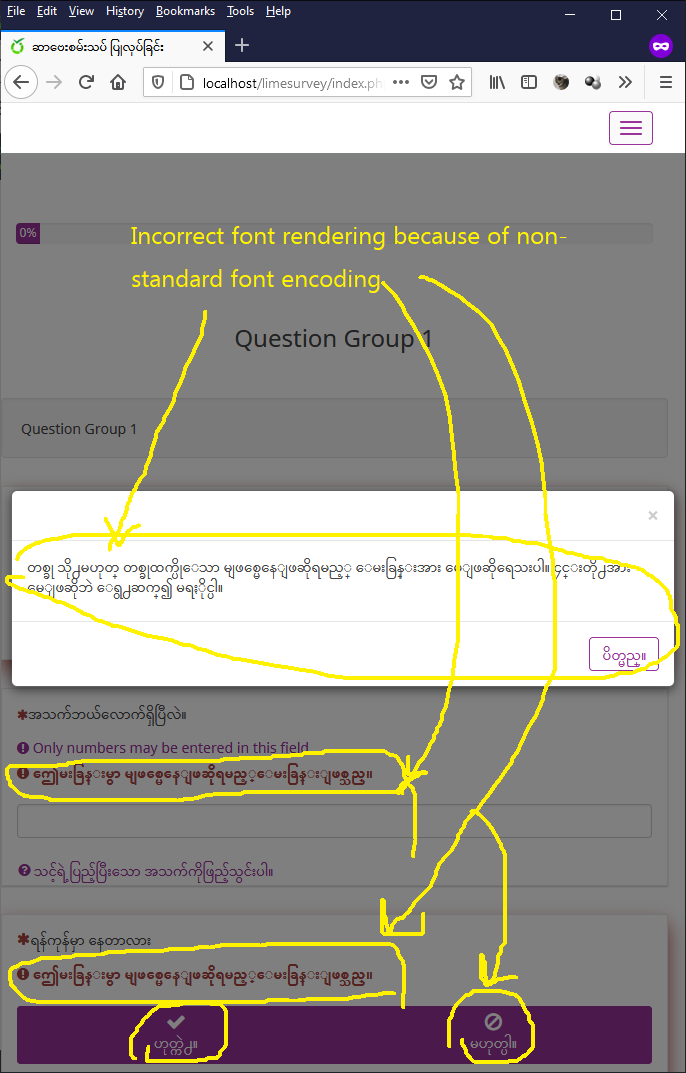 | Description | Non-Unicode standard encoding called Zawgyi is used for Myanmar Localization. There are also some inaccurate and totally wrong translations. | ||||