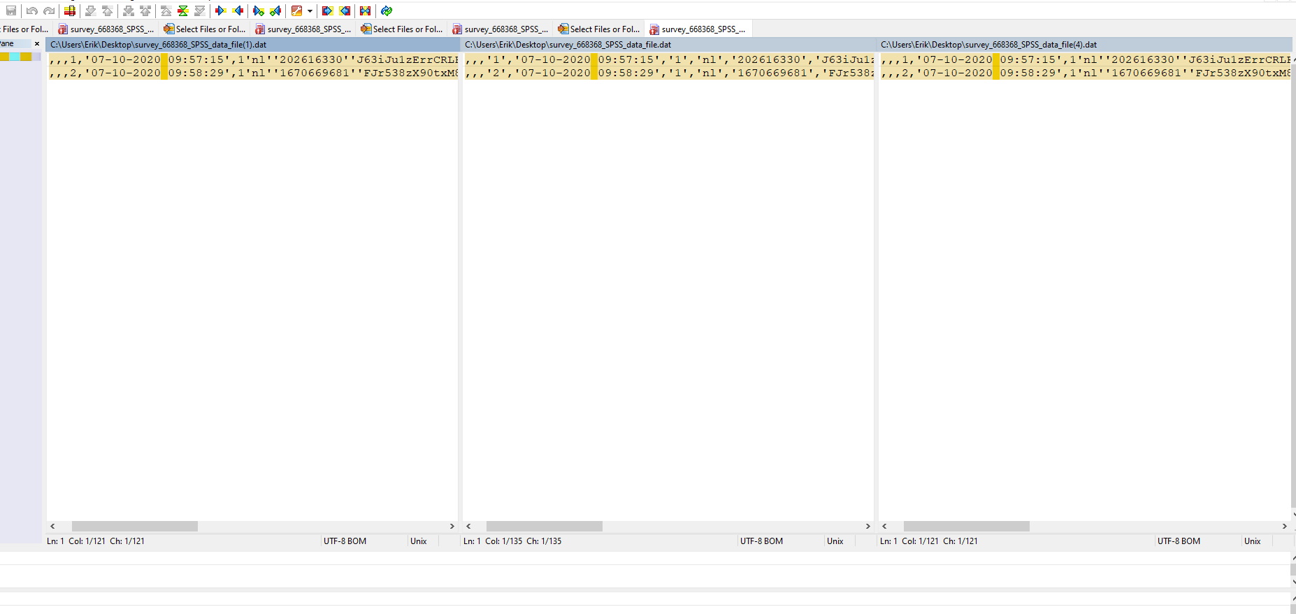 ,,,,,,,,,1,'06-11-2020 10:59:02',1,'nl','1178055172','jZT2XaO7VQAeK6n','06-11-2020 10:58:36','06-11-2020 10:59:02''foo''bar''foo''bar'111'foo'222'bar''foo' ,,,,,,,,,2,'06-11-2020 10:59:32',1,'nl','617589883','3WInDFdTu0CHBXZ','06-11-2020 10:59:14','06-11-2020 10:59:32''foo'111'bar'222 survey_814171_SPSS_data_file.dat (292 bytes)