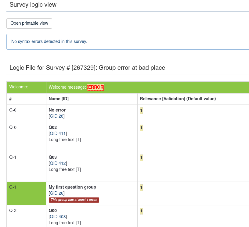 | child of | 16738 | closed | DenisChenu | Check logic, error in question group shown as error in question |