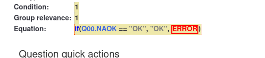 | Summary | 16755: When adding an equation at the "logic" question attribute, the question summary doesn't check for syntax | ||||
