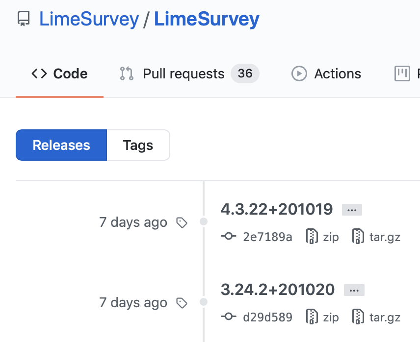 Hi Denis, thank you again for your quick response. I've attached the images I was seeing in GitHub. The script I use to install LimeSurvey uses the GitHub release URL, that's why I was wondering whether the 3.24.3 release had an issue with it? |