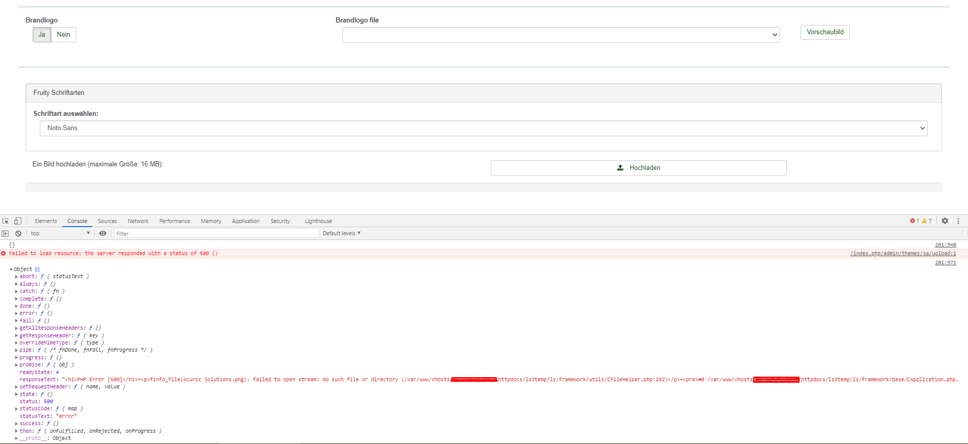 | Description | When trying to upload a PNG (or other) file at the global theme options I get a 500 server error. Uploading files at the survey's theme options works fine though. | ||||
