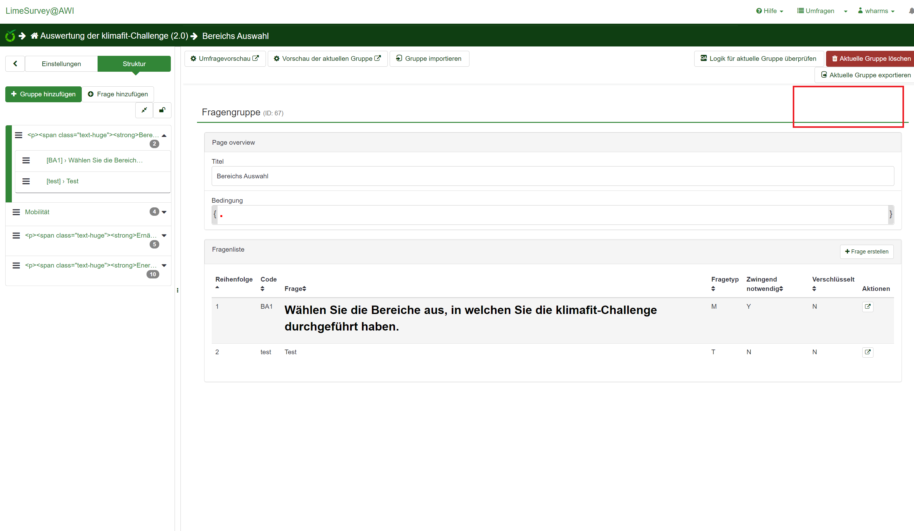 | Description | Hi all, while me as an LS-Admin and another user as the survey owner have no problems with this case, other/additional authors (who have full rights to edit the survey) will not see the question group editor buttons. | ||||