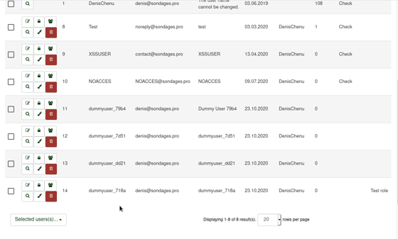 | 2021-01-12 20:07 | DenisChenu | Summary | User with roles can npot have more rights … => User with roles can not have more rights … |