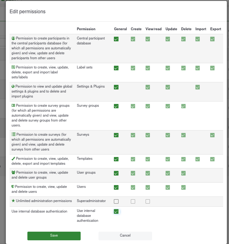 | Additional Information | https://github.com/LimeSurvey/LimeSurvey/blob/68ce18e22194171e1c56c27f36ad7ce5b34adc8a/application/models/Permission.php#L504 issue : return false And more : test is stupid ! totally stupid : why check ALL roles permission if you need only one … permission : just check if this role have this permission … | ||||