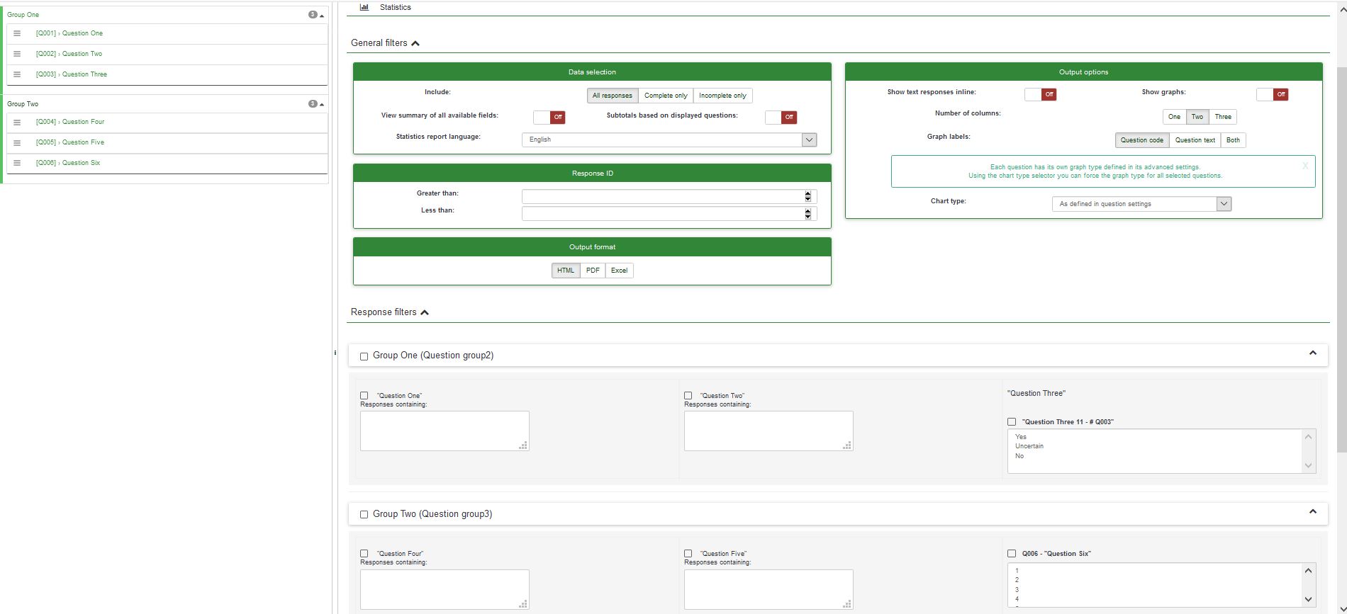 | Summary | 16981: Questions in Response filters in statistics not in the same order as the survey | ||||