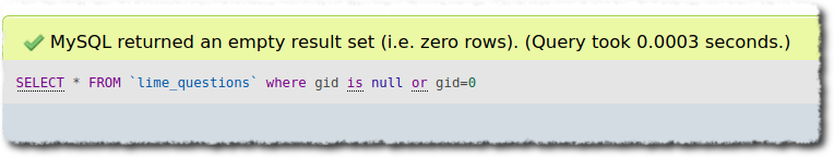 But only if qid is set (and not the case here) Can you check in DB if you have some empty gid ? Some question with gid === null ? |