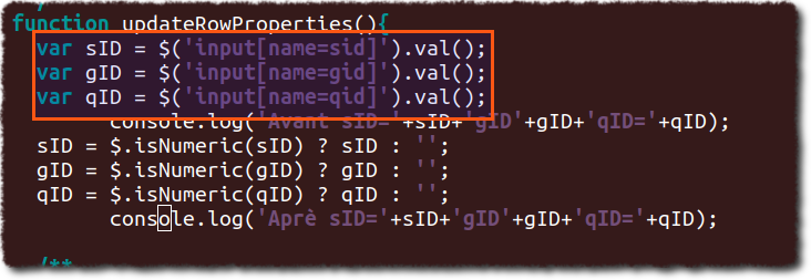 I've hacked the /application/views/questionAdministration/subquestionRow.twig It appears there's at least 1 error in the original subquestionRow.twig as the gid parm should be replaced by question.gid (mark #1 on screenshot #1). But it still does not make the trick : the parms are present at the twig level and get erased during the processing |
