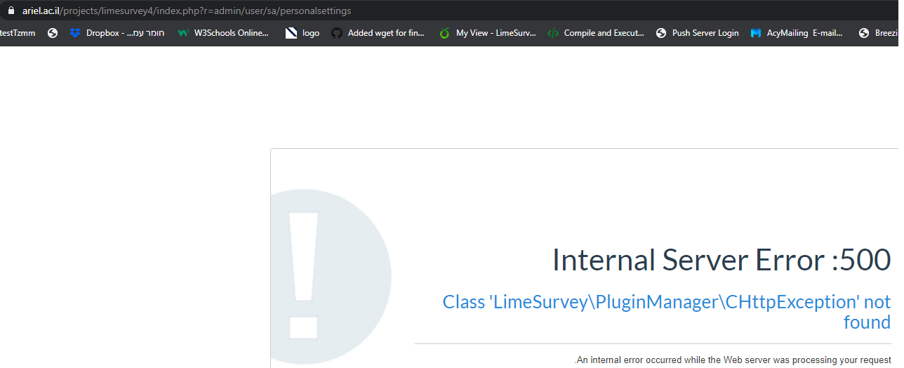 | Summary | 17095: After logout or save in the change password, result is Error of Class 'LimeSurvey\PluginManager\CHttpException' not found | ||||