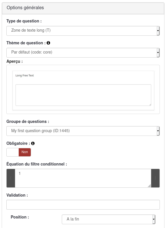 | Description | Fresh created question will be added to wrong group. (If you have more than one group in your survey) | ||||