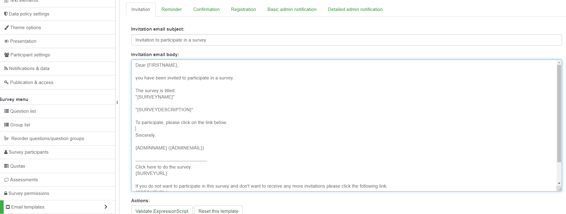 | Steps To Reproduce | Click on Email templates in the menu of a survey | ||||