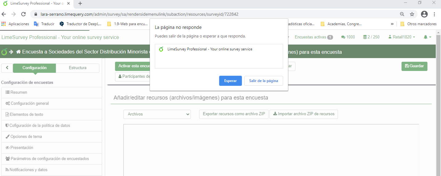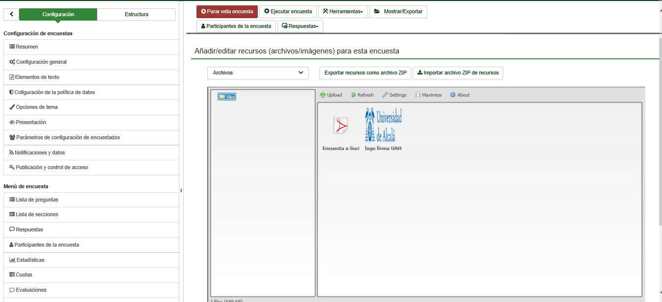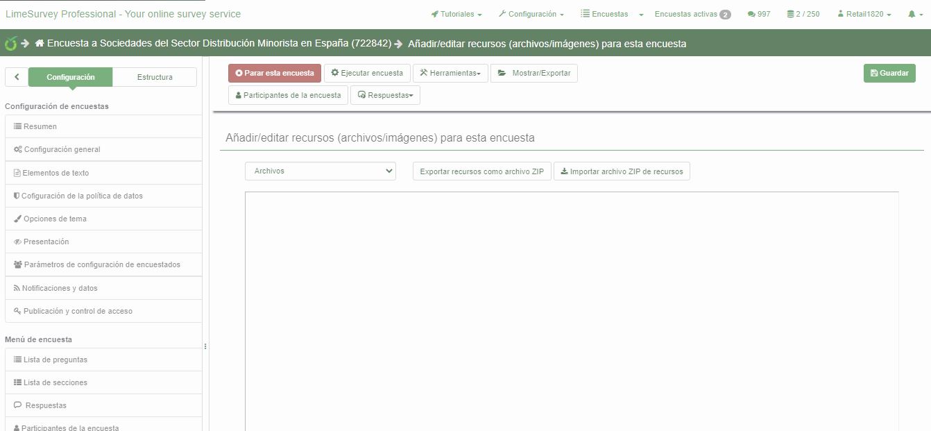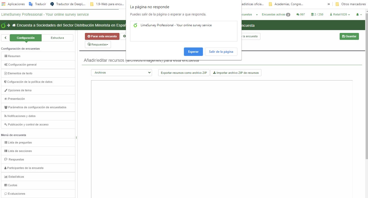 | Summary | 17109: Lime Survey crashes when trying to upload files/images to Resources and email templates. | ||||