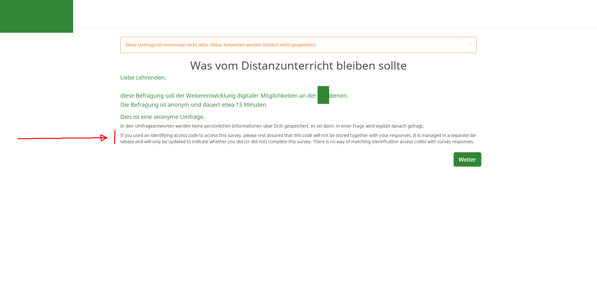 | Description | I am using the german informal language. When I turn on the anonymous setting for the survey, the text shown on the welcome page is english | ||||