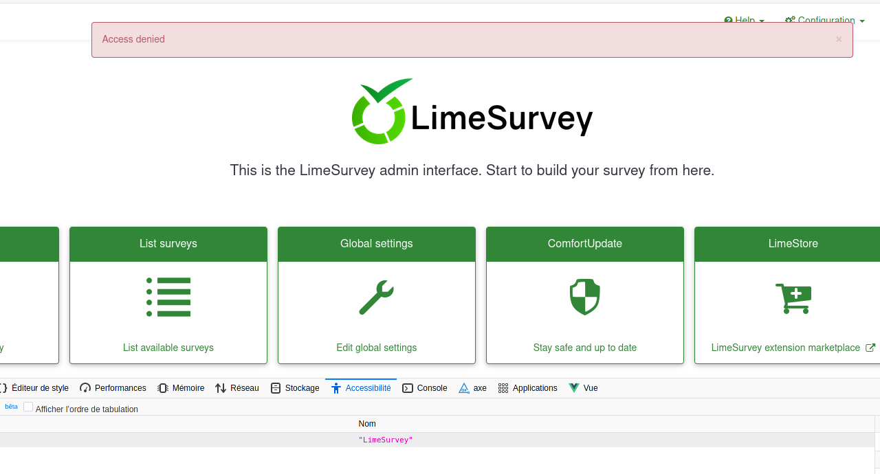 | Description | When there are an outdated url : survey admlin show alert with « Access denied» even for super admin It must be a 404 : not found | ||||