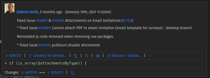 | related to | 16854 | closed | gabrieljenik | Cannot attach PDF to email invitation (email template for surveys) |