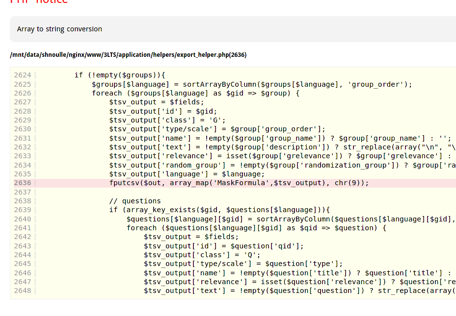 Summary17251: Some survey throw error about Array to string conversion export as TSV