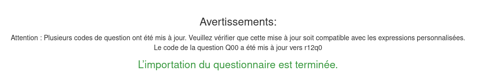 LSS import warning show the question code updated. Need to report another issue ? Feature request ? |