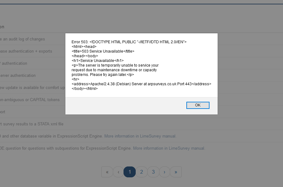 In reply to ollehar, the 503 error is still happening and yes, I had amended the config.xml file to read Limesurvey 5.0 but it didn't do anything. I was actually attempting to remove all additional plugins back to default as the first stage in troubleshooting, but the interface wouldn't let me even see what was supposed to be installed! |