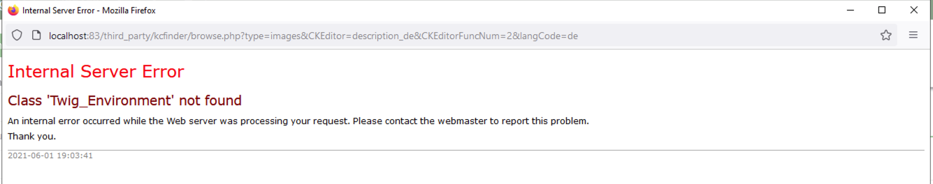 | Description | When uploading an Image in the texelements section (attachment 1 & 2) inside any of the textboxes (for example welcome message) it throws a "Class 'Twig_Environment' not found" error message. | ||||