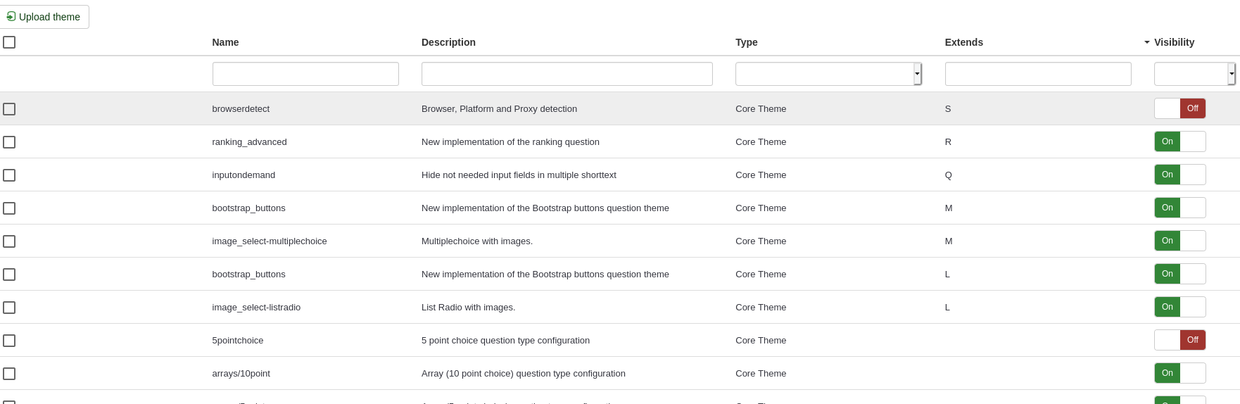 | Description | In Question theme management : there are no difference between : core theme and Question theme from core | ||||