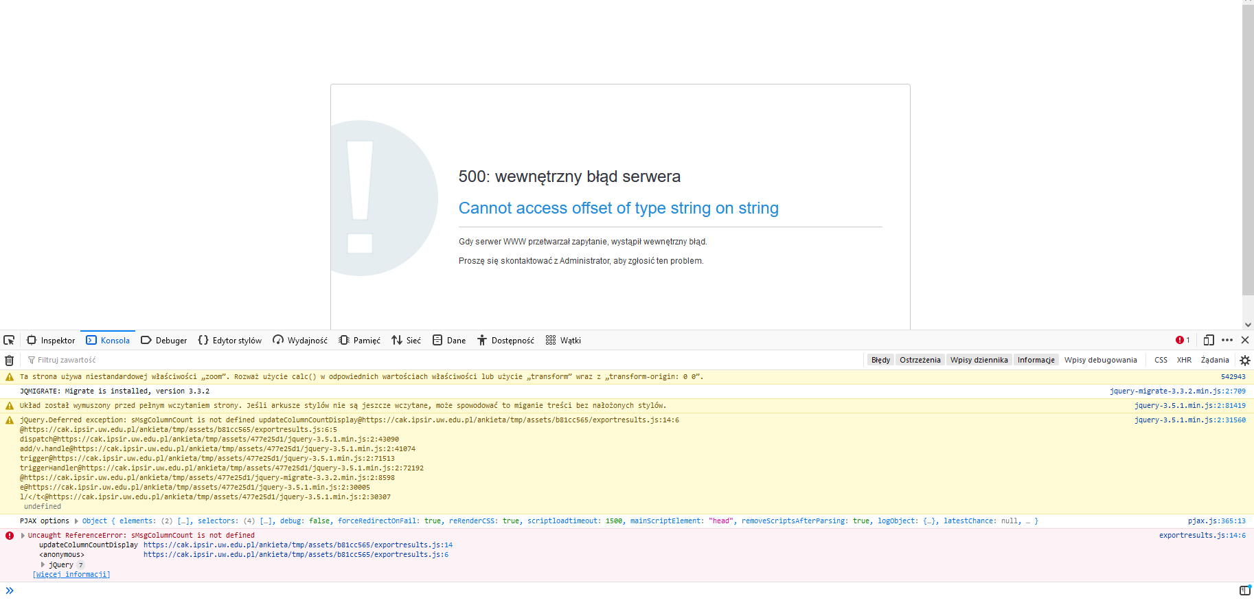 | Description | When trying to export with "Full answers" question type: Array Dual scall - I'm getting error: Uncaught ReferenceError: sMsgColumnCount is not defined I'm able to export results as "Answer codes" without any problems. | ||||