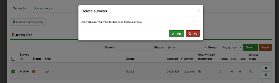 | Summary | 17500: When mass-deleting, list survey names and ids to be deleted | ||||