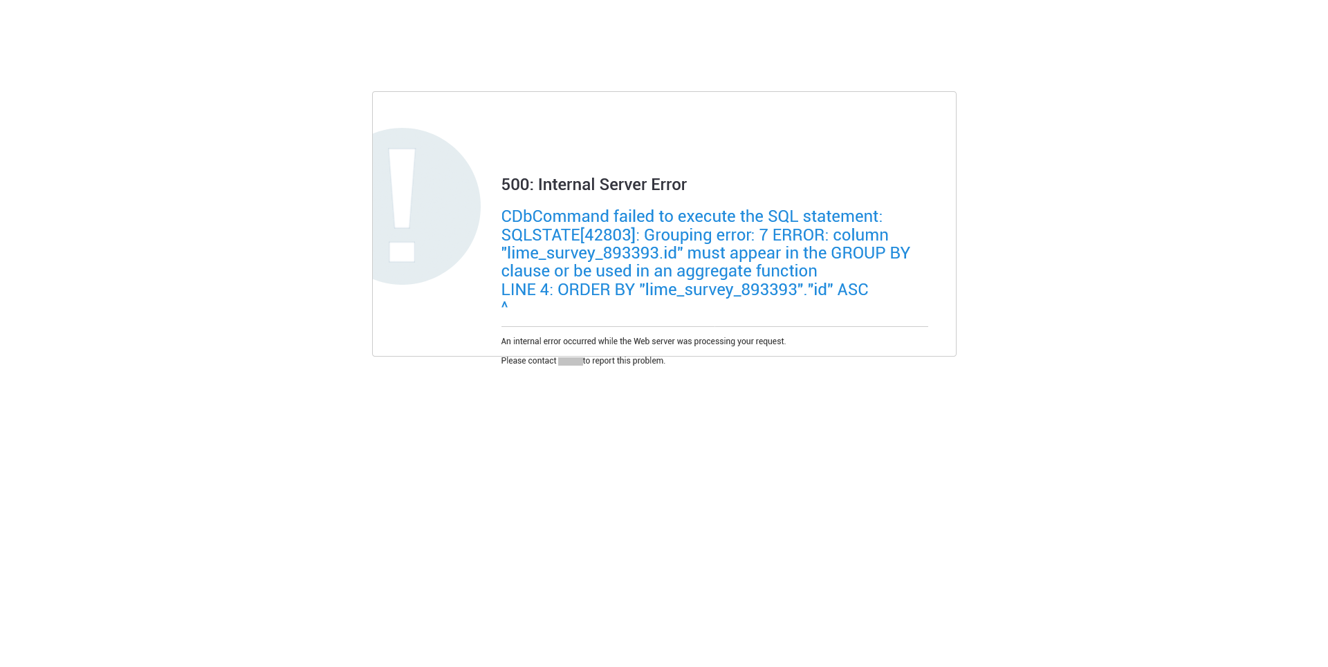| Summary | 17522: CDbCommand failed to execute the SQL statement: SQLSTATE[42803] | ||||