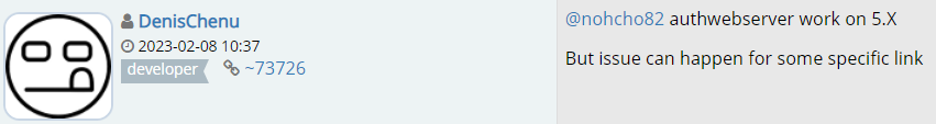 @nohcho82 authwebserver work on 5.X But issue can happen for some specific link |