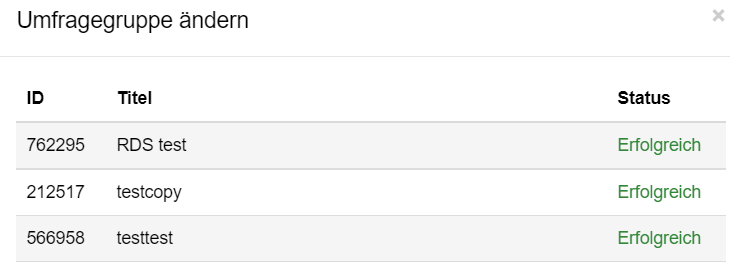 | Summary | 17588: Mass change of survey group fails | ||||