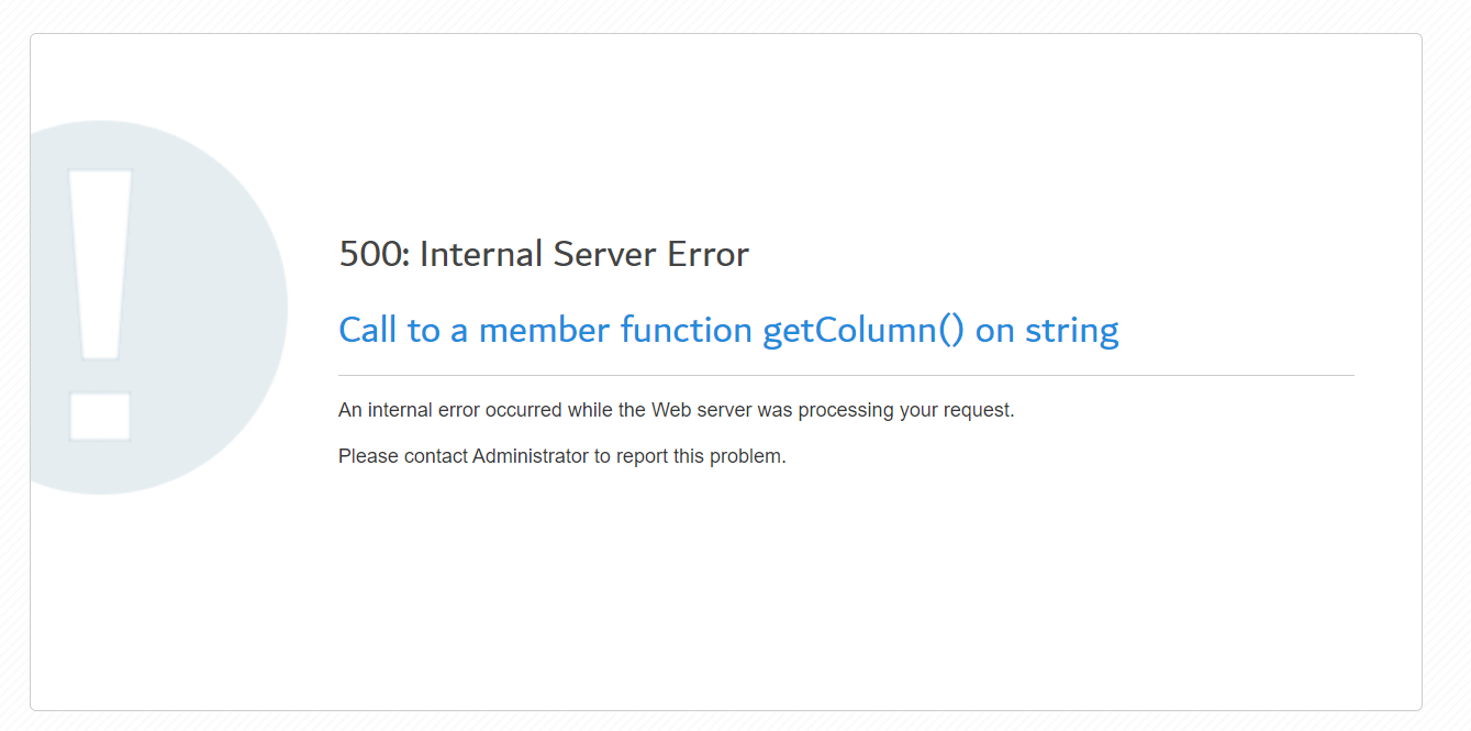 | Summary | 17592: Call to a member function getColumn() on string | ||||