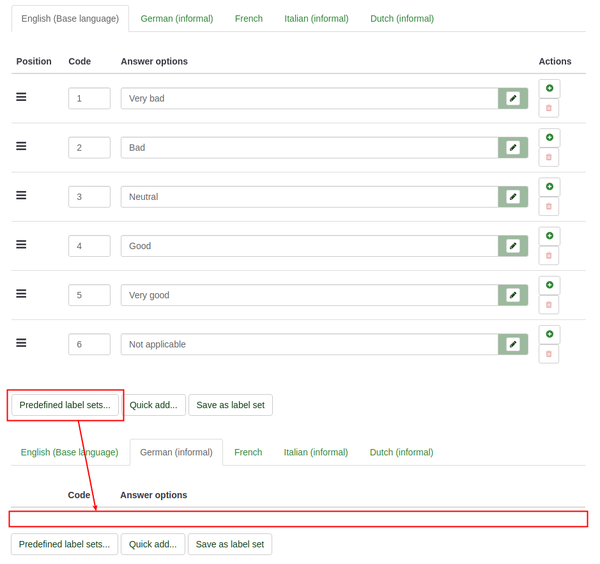 | Description | When loading an EN label set as answer options for a multilingual survey having EN set as base language, the answers are correctly loaded into the answers list. But when clicking save, the list is blank again and the options are gone. | ||||