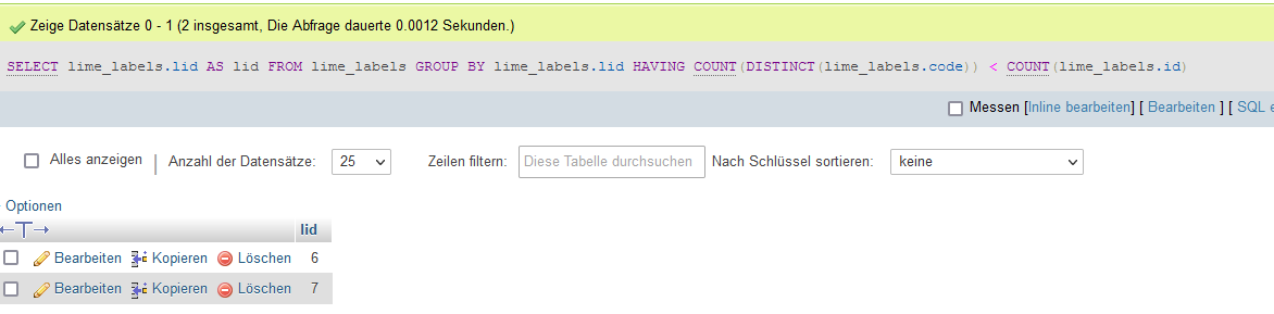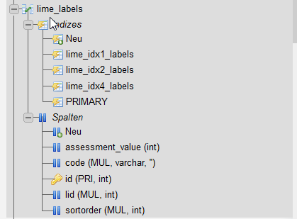 | Description | An non-recoverable error happened during the update. Error details: CDbCommand failed to execute the SQL statement: SQLSTATE[23000]: Integrity constraint violation: 1062 Duplicate entry '6-1' for key 'lime_idx5_labels' File updatedb_helper.php, line 4955. Hello, I tried to update from a Version from August (5.1.x to the latest one 5.1.14). I got this error. I have this as a test-version I only have a handful of questionnaires in there. In my sql viewer for the database I have lable_idx1-4 but no idx5 (see screenshot) | ||||