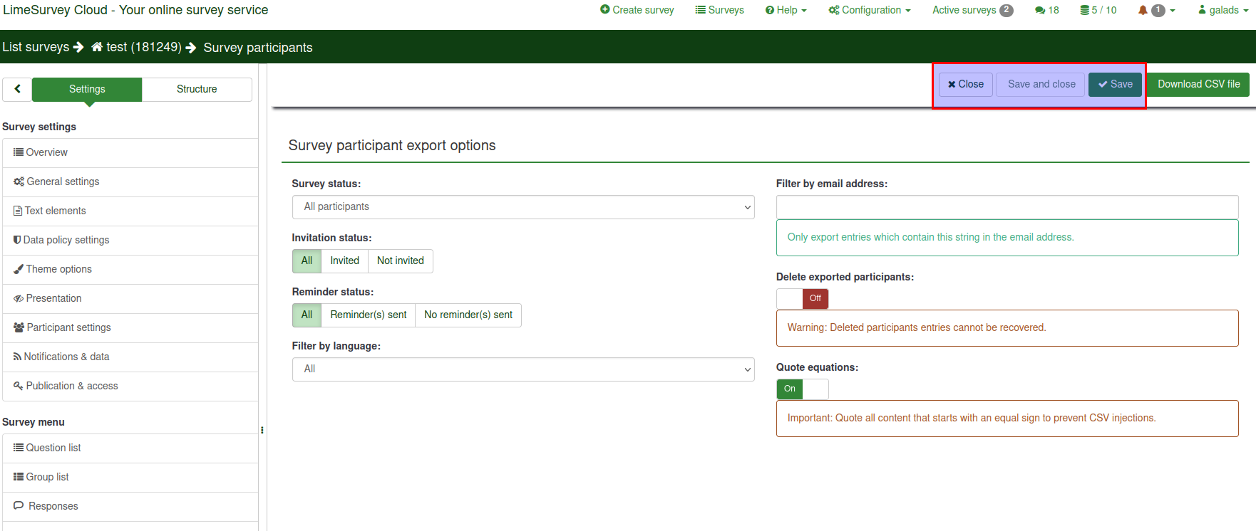 | Description | When you export participants and try to "close" the page, it does not redirect back to the participant list. Save and close behave the same way but it is supposed to be disabled on this screen. | ||||