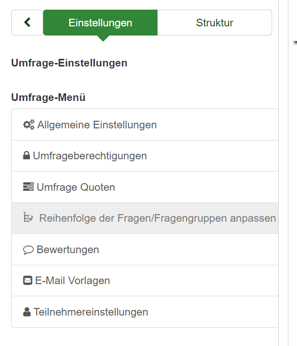 Ok, what I see is, that a lot of menu points, like "Groups list", fell out of the "Survey Menu" and if I add them again (edit with "menu entries"), there is still the problem, that i won't open. But the menu point is back. |