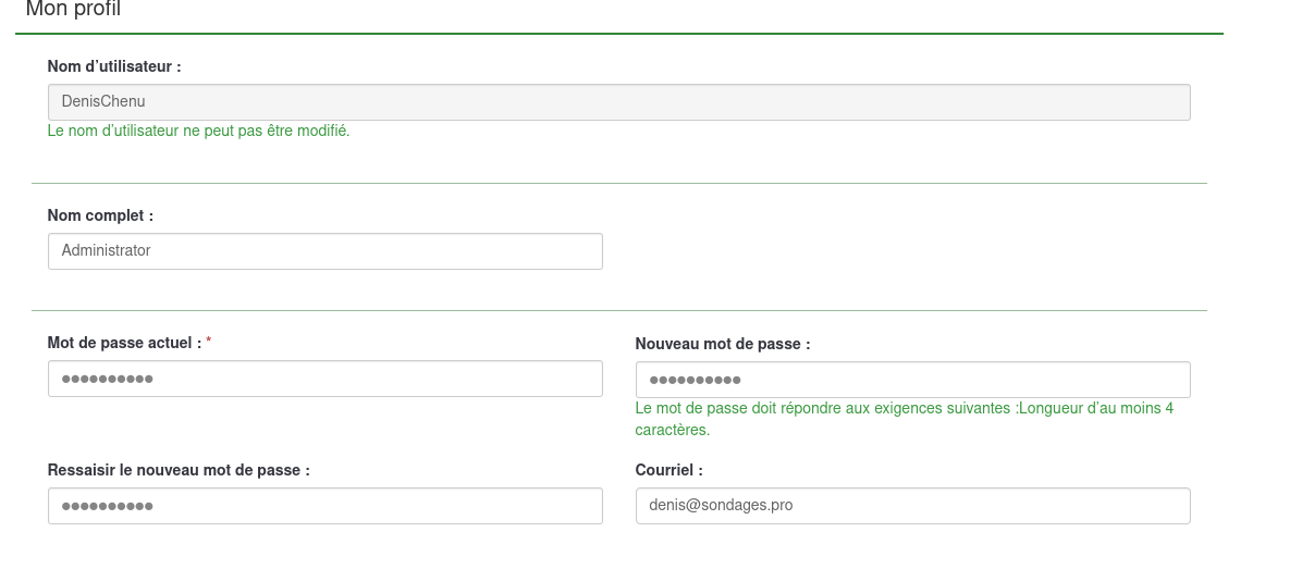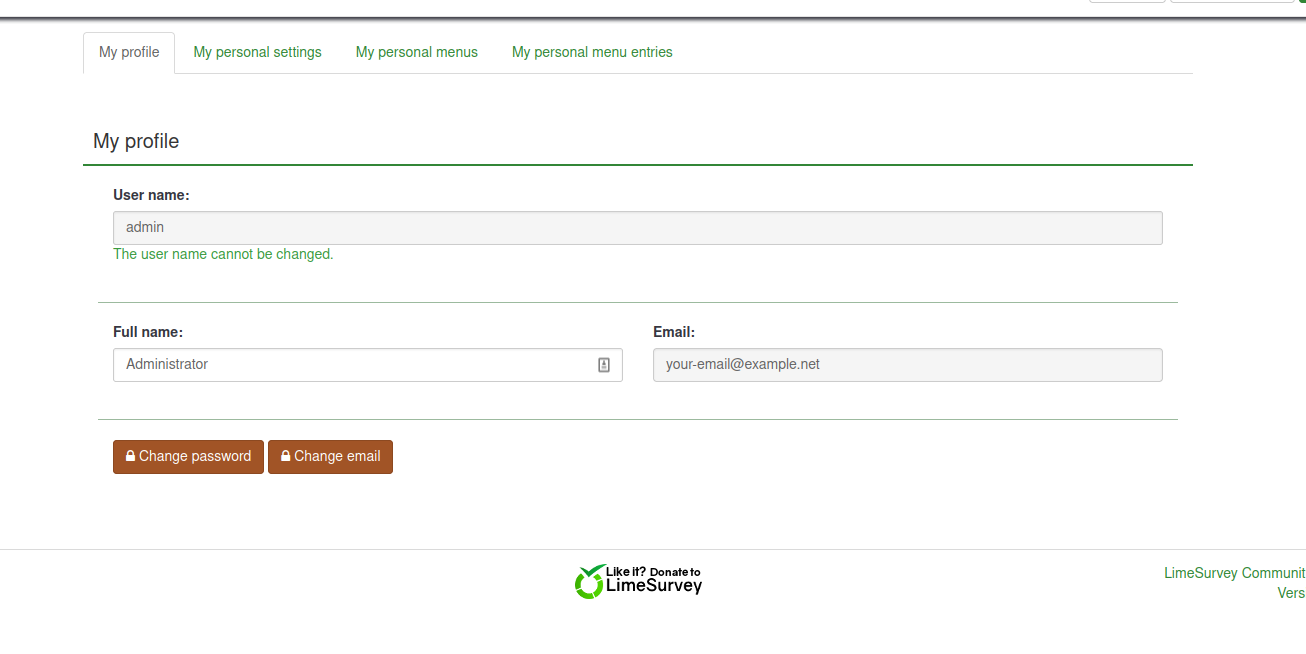 | 2021-11-05 16:20 | tammo | Summary | Cannot change admin email address => Change of email address for survey administrator confusing |