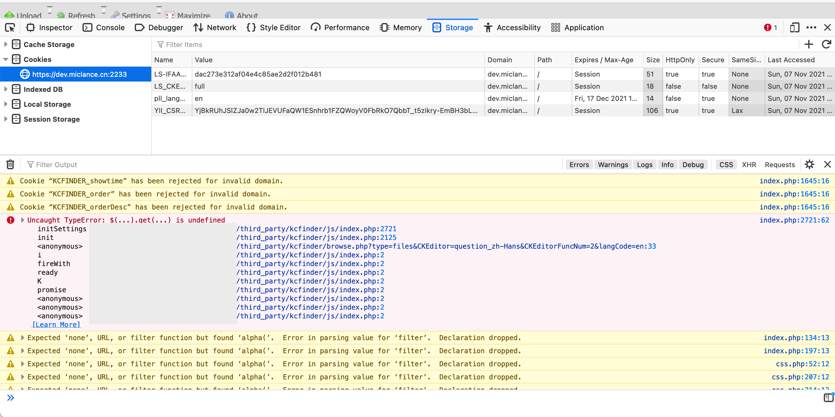 I have uploaded the console (F12) screenshot for the main page, I saw your screenshot is a KCfinder pop-up window. So I did the same as you. And activate the console as you did. |
