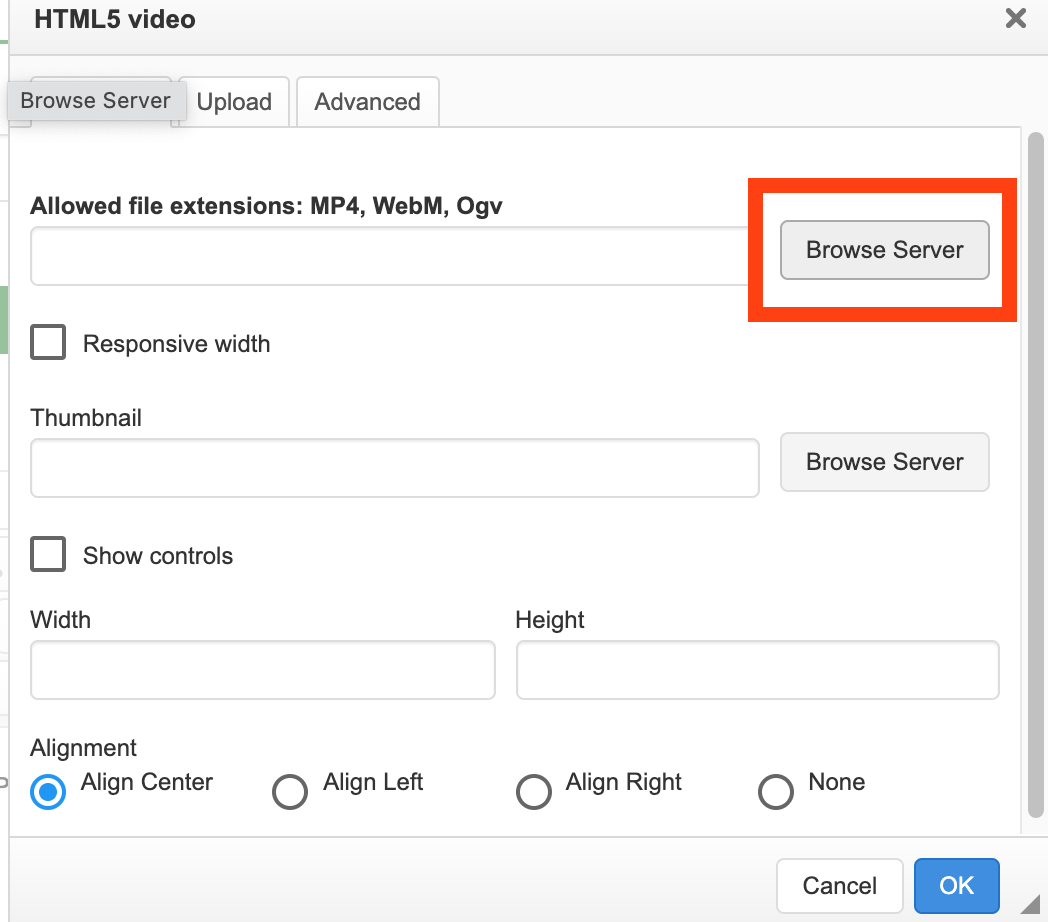 | Steps To Reproduce | Steps to reproduceAdd a question, choose an upload video, Press the video upload botton, then press the "browse server". Expected resultThe KC finder shows up, and we can see the file structure and we can upload files to the server. Actual resultAll of the buttons have no reaction, and the form page areas are blank, which should show the files structure. | ||||