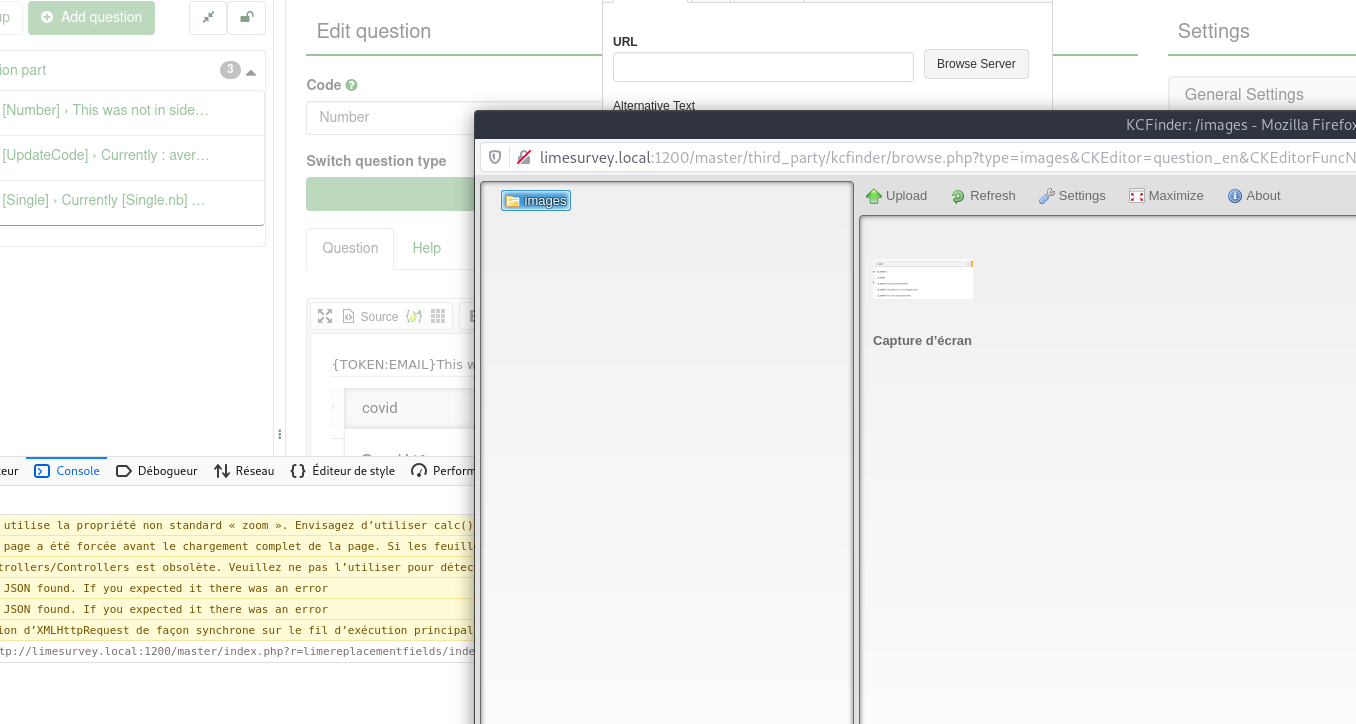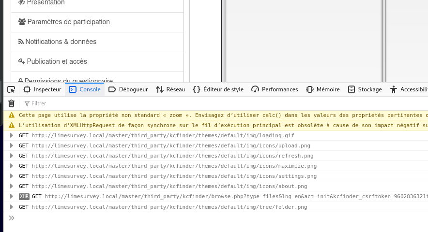 Can not reproduce , example.com:5678/survey/third_party/kcfinder/browse.php?type=images&CKEditor=question_en&CKEditorFuncNum=2&langCode=fr Need more information, |