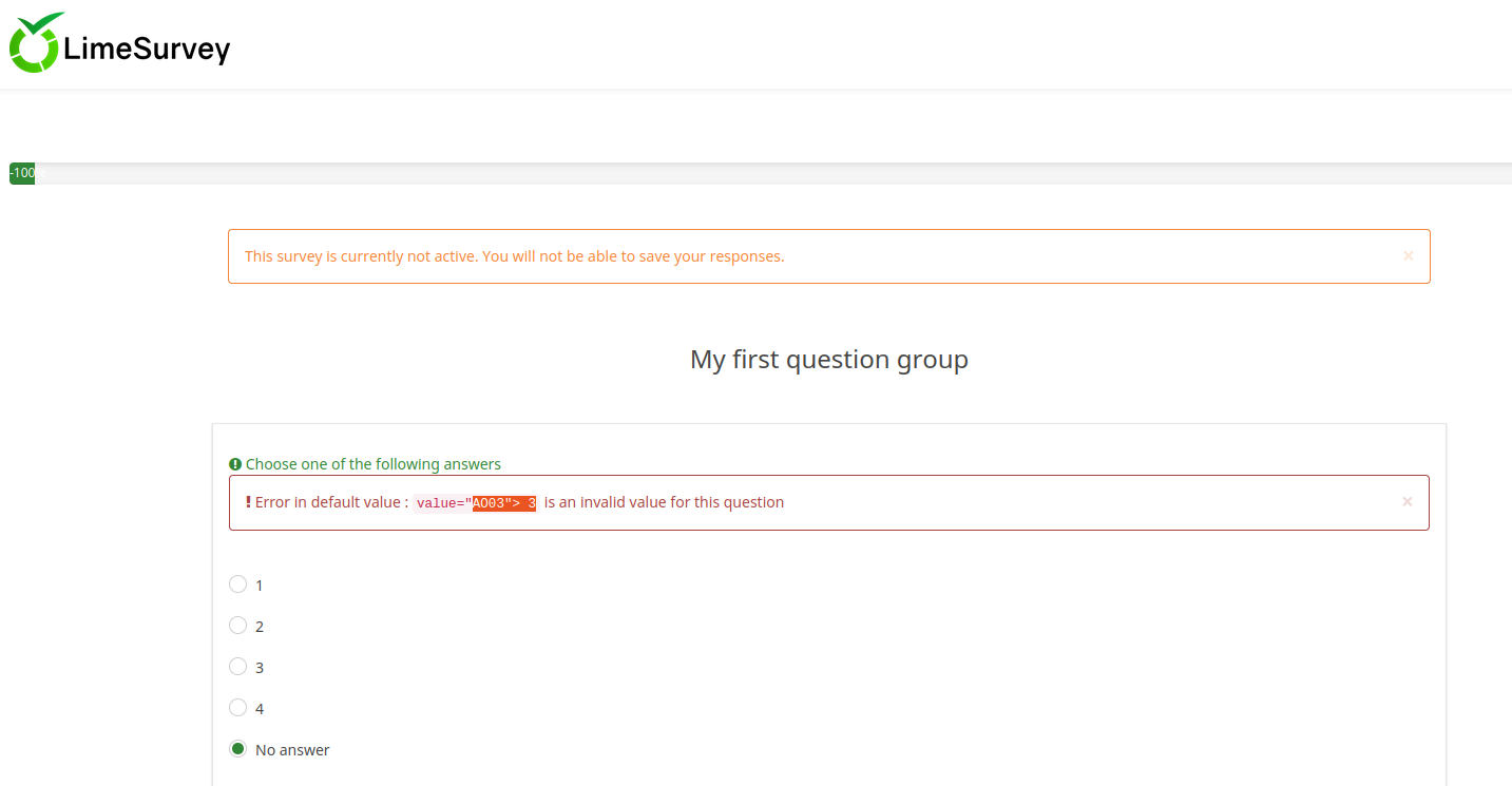 | Steps To Reproduce | Set a default answer for a radio type of question. | ||||