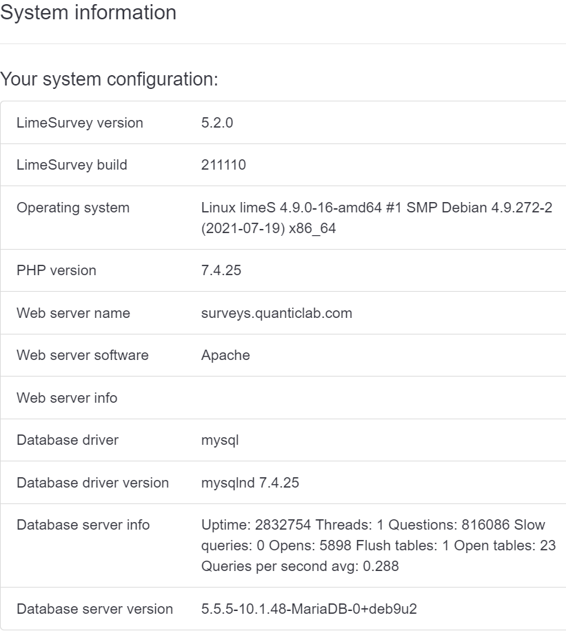 Please : confirm LimeSurvey version ? |